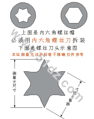 请注意:当您用圆柱去测量内六角螺丝孔应该使用多大的螺丝刀时,那么只能测量出最小直径,这个直径会比以上的最小宽度还要小才是正常的;如果您用卡尺测量内六角螺丝孔的最大直径,这应该略大于最大尺寸。 如果您需要单支购买,每支3元。请在备注中注明你要购买的那支的尺寸,并且将您在本站的余款中输入应该少收您的钱。例如:你只需要2号,您在备注中注明“只需要2号应收费3元”,然后在余款中输入“5”(因为8-3=5),这样,本站实际上就只会收您3元。再如:你只需要2号和4号,您在备注中注明“只需要2号和4号应收费6元”,然后在余款中输入“2”(因为8-6=2),这样,本站实际上就只会收您6元。当然,假如您只要3支的话,我们不会收您9元,你只需要付8元,我们也会给您发4支的。