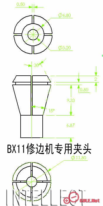 先上sw绘制的尺寸及3d图,定义为BX11夹头标准,呵呵。