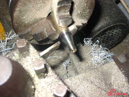 开工,找不到合适的材料,用45#钢制作的东东没有弹性,只好用黄铜制作,发觉还不错,有一定弹性还比较好车并且相对耐磨。