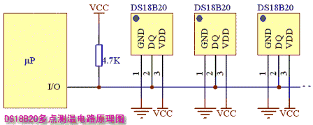 1.3、 DS18B20支持多点组网功能,多个DS18B20可以并联在唯一的三线上,实现组网多点测温