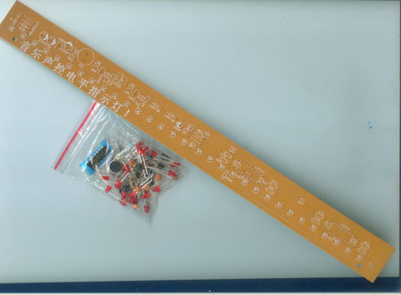 音乐声控电平指示灯套件:随着音乐的声音的大小两边的发光二极管会随着闪动。电路板上有标元件参数,电路原理图请点击/p/09/d/mu2004.gif 电路板的规格:长320mmx宽30mm。本站配的IED灯都是红色的,大家可以根据自己的爱好,配不同颜色的灯,闪出的效果将会不一样。其它颜色的灯本站有单独销售。