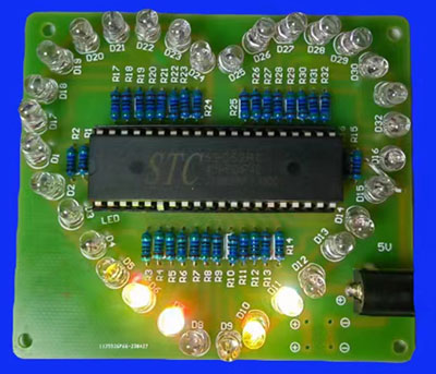 单片机七彩心形流水灯套件